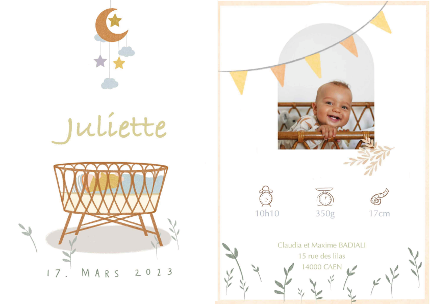 Quelle que soit l’option choisie, chaque création est personnalisée avec attention, pour que votre annonce soit à votre image — douce, unique et remplie d’émotion.