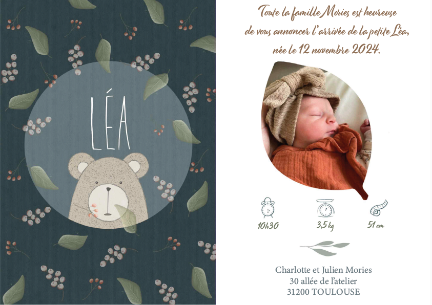 Format numérique (PDF haute qualité) : idéal pour les parents qui souhaitent partager leur annonce rapidement et à petit prix.